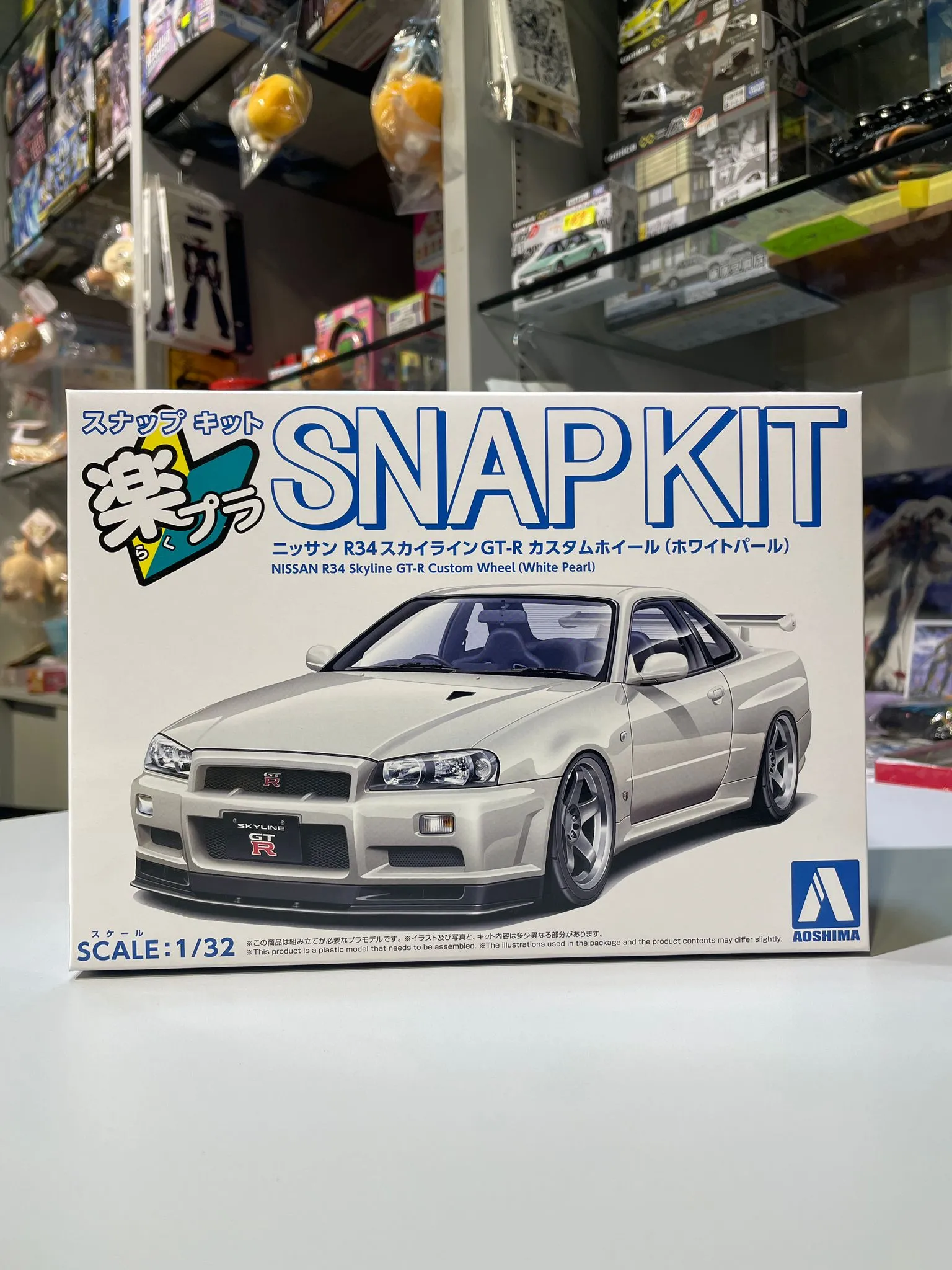 Aoshima 1/32 12CU-WP The Snap Kit Nissan R34 Skyline GT-R Custom Wheel (White Pearl) 免上色免膠水 20277