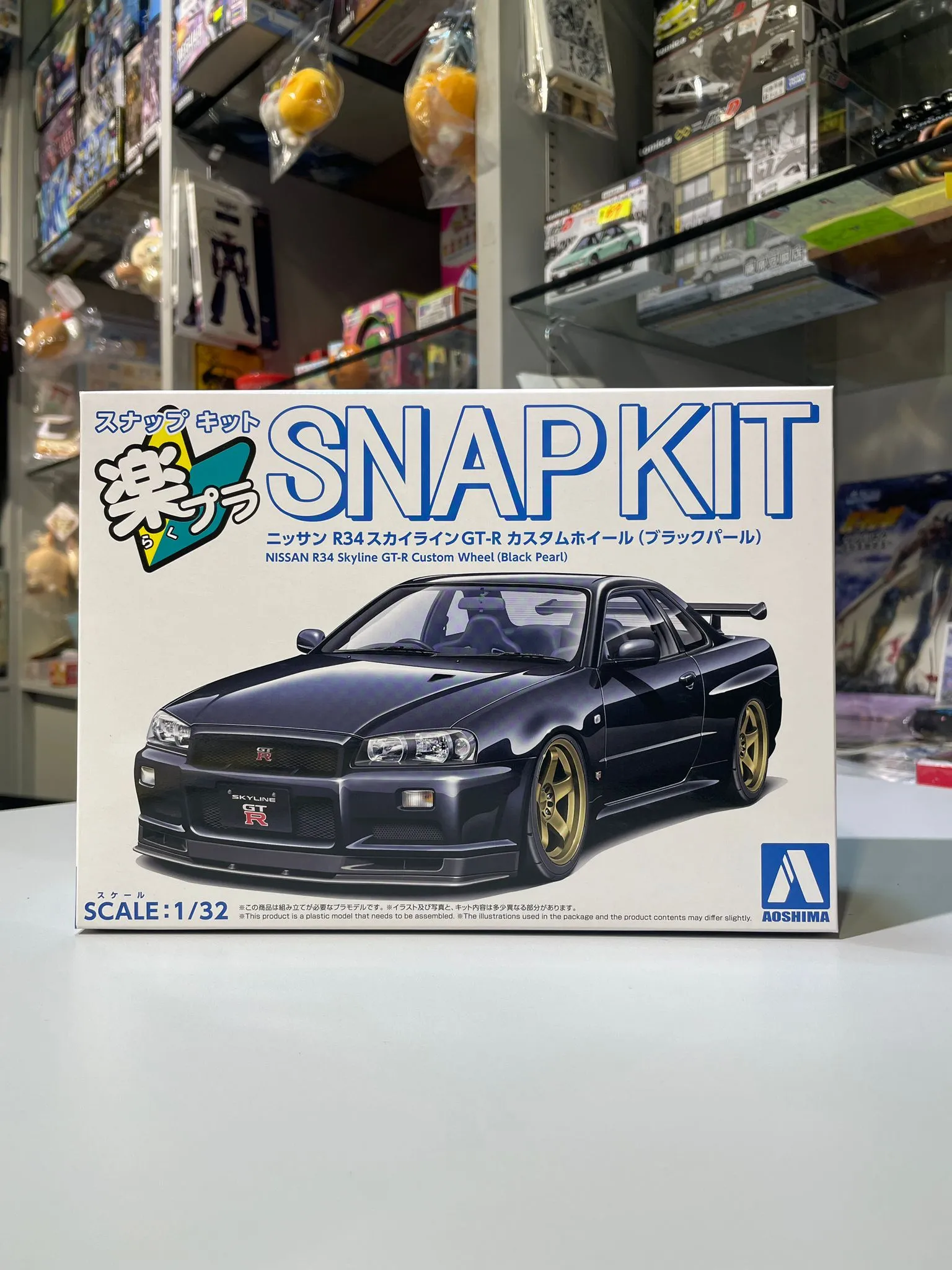 Aoshima 1/32 12CU-BP The Snap Kit Nissan R34 Skyline GT-R Custom Wheel (Black Pearl) 免上色免膠水 20276